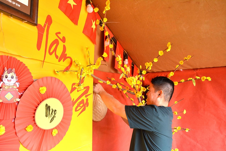 | Trang trí doanh trại chuẩn bị đón Tết tại Bệnh viện dã chiến cấp 2 số 7 . |