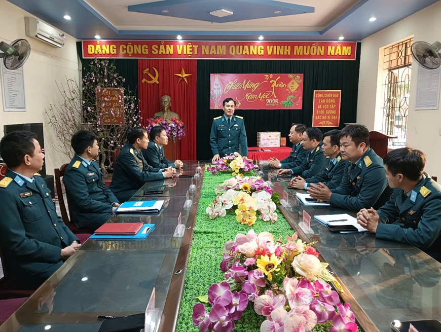 Đại tá Phạm Văn Thiết, Phó sư đoàn trưởng Sư đoàn 363 chúc Tết cán bộ, nhân viên Phòng Chính trị.