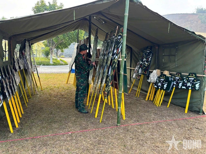 | Cán bộ, chiến sĩ Trung đoàn 750 tích cực củng cố mô hình học cụ cho mùa huấn luyện mới. |