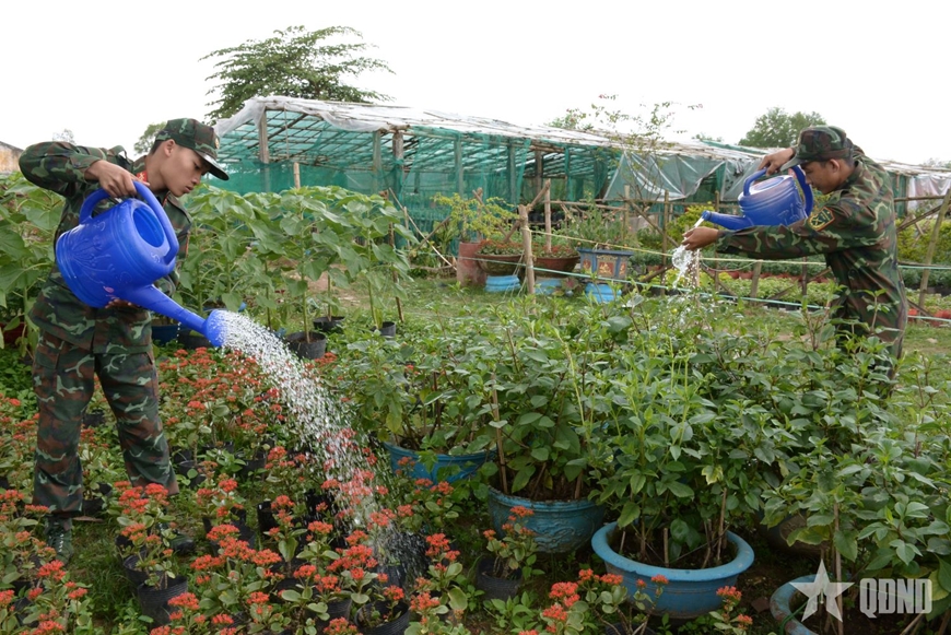 Chăm sóc hoa chuẩn bị đón xuân tại Liên chi đoàn 2, Đoàn cơ sở Trung đoàn 143 (Sư đoàn 315, Quân khu 5).