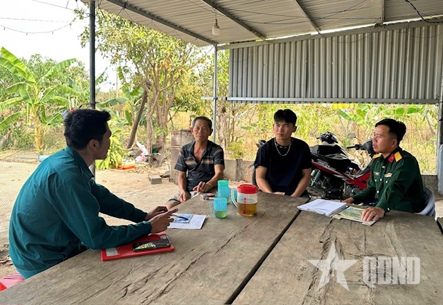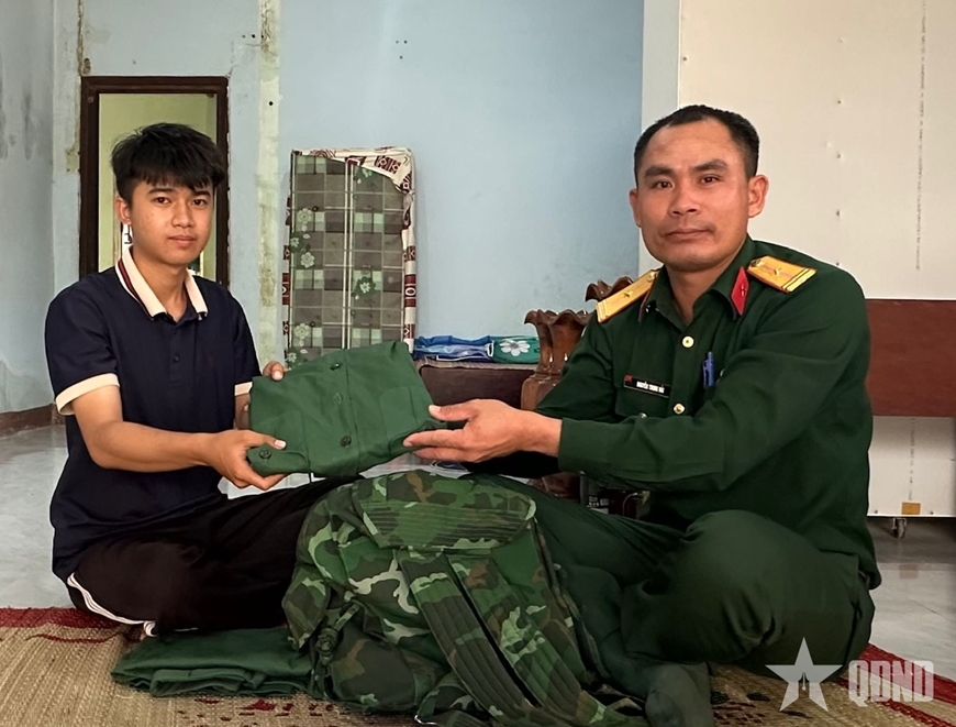| Cán bộ Ban CHQS xã Ia Rvê đến nhà động viên thanh niên chuẩn bị nhập ngũ. |