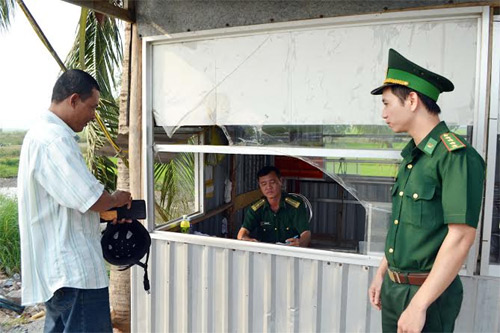 | Kiểm tra thủ tục qua lại biên giới tại Cửa khẩu quốc tế Tịnh Biên. |