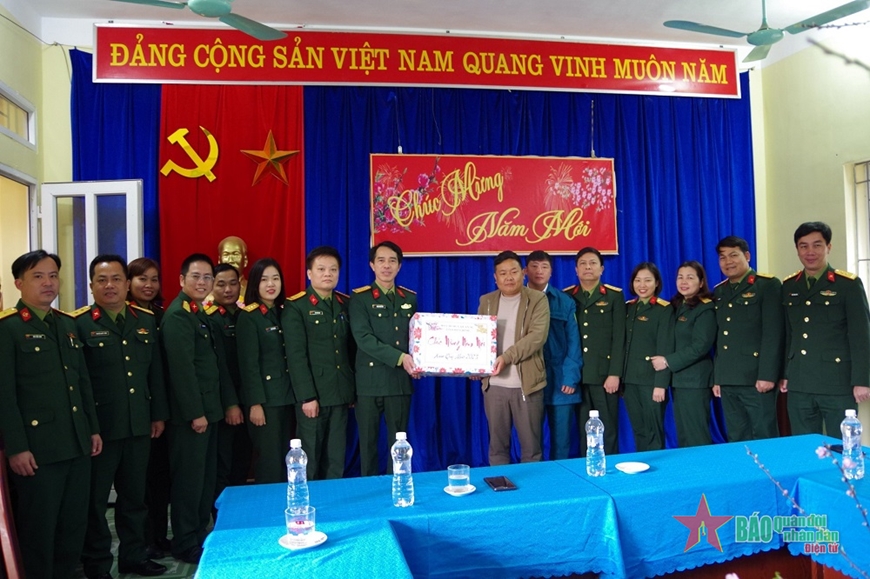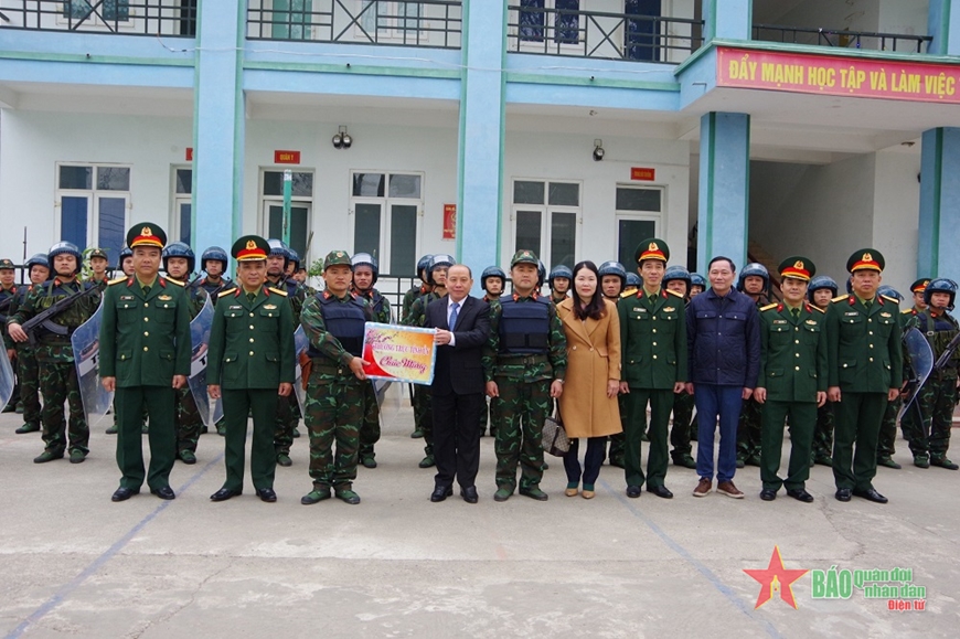 | Lãnh đạo UBND tỉnh và Bộ CHQS tỉnh Hòa Bình tặng quà, chúc tết cán bộ, chiến sĩ Đại đội Trinh sát, Phòng Tham mưu. |