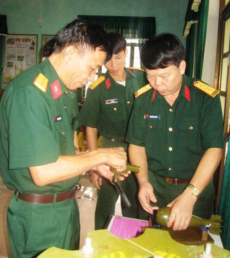 Đoàn công tác Cục Quân khí kiểm tra sáng kiến thiết bị tháo nút phòng ẩm đạn cối của Kho KV2.