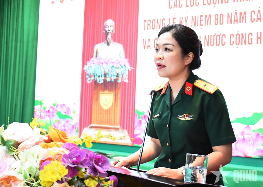 Báo cáo về quá trình thực hiện nhiệm vụ, Thiếu tá QNCN Vũ Thị Hương Mai bày tỏ niềm vinh dự khi được tuyển chọn trực tiếp tham gia diễu binh, diễu hành trong lễ kỷ niệm. Ngay từ đầu, đồng chí Mai cùng đồng đội đã xác định rõ trách nhiệm, nỗ lực cố gắng, khắc phục mọi khó khăn, sắp xếp công việc của bản thân ở cơ quan, đơn vị cũng như gia đình để tập trung luyện tập và phục vụ với tinh thần cao nhất, góp phần vào thành công chung của ngày hội lớn của dân tộc.
