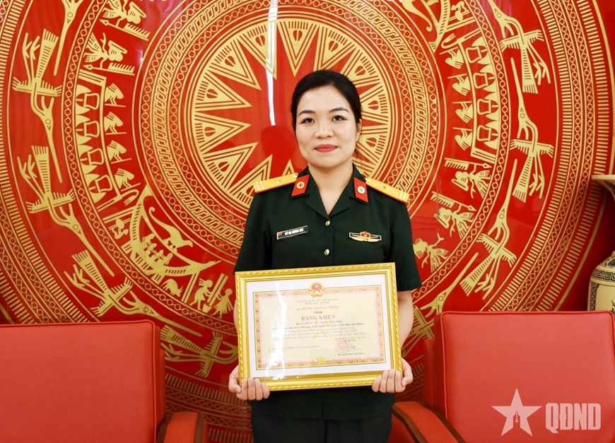 Thiếu tá QNCN Vũ Thị Hương Mai được nhận bằng khen của Bộ trưởng Bộ Quốc phòng.