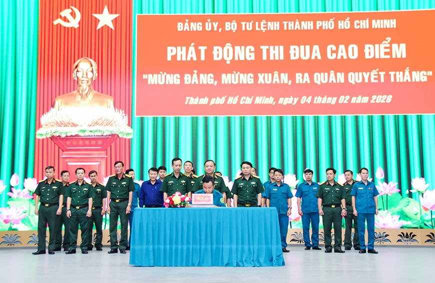Với tinh thần gắn thi đua với thực hiện nhiệm vụ chính trị trọng tâm, Bộ tư lệnh TP Hồ Chí Minh tập trung chỉ đạo hiệu quả công tác nghiên cứu, dự báo, tham mưu cho cấp ủy, chính quyền địa phương trong lãnh đạo, chỉ đạo thực hiện nhiệm vụ quân sự, quốc phòng; sâu sát cơ sở, hướng dẫn đơn vị triển khai nhiệm vụ ngay từ đầu năm; đồng thời chủ động chuẩn bị, tổ chức tuyển chọn, gọi công dân nhập ngũ và lễ giao-nhận quân năm 2026 đúng luật, bảo đảm chỉ tiêu, nâng cao chất lượng. Đặc biệt, với cuộc bầu cử đại biểu Quốc hội khóa XVI và đại biểu HĐND các cấp, LLVT thành phố đã quán triệt sâu sắc nhiệm vụ, xác định rõ trách nhiệm công dân và nhiệm vụ tham gia giữ gìn an ninh trật tự trong suốt thời gian diễn ra bầu cử.