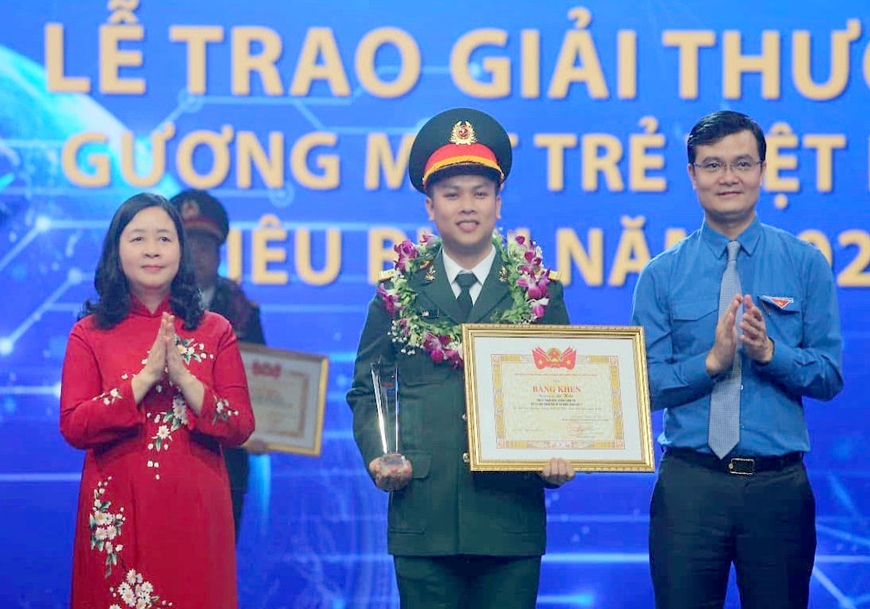 | Thượng úy Lê Hảo vinh dự được nhận danh hiệu Gương mặt trẻ Việt Nam tiêu biểu năm 2022. |