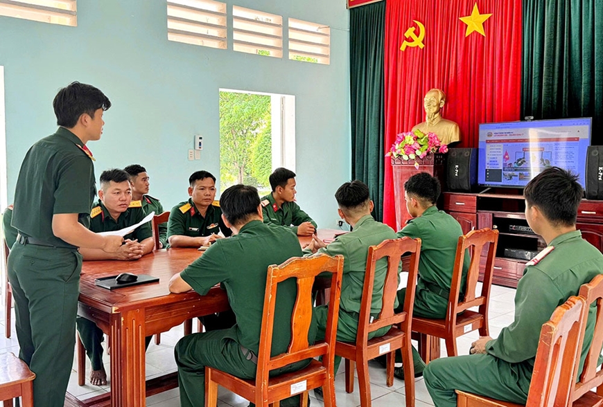 Giao ban trực tuyến hằng ngày qua hệ thống công nghệ thông tin, thư viện số của Lữ đoàn 23. |