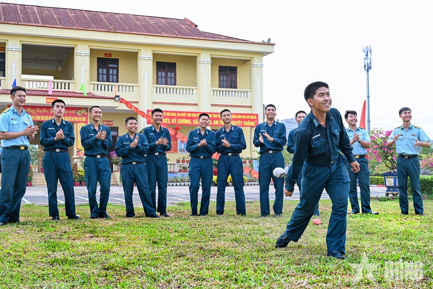 Trò chơi ném còn ngày xuân thu hút sự cổ vũ nhiệt tình của bộ đội.