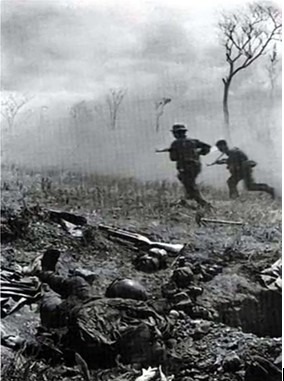 | Bộ đội ta tiến công đồi Không Tên, tiêu diệt Lữ đoàn dù số 3 ngụy. Ảnh tư liệu. |