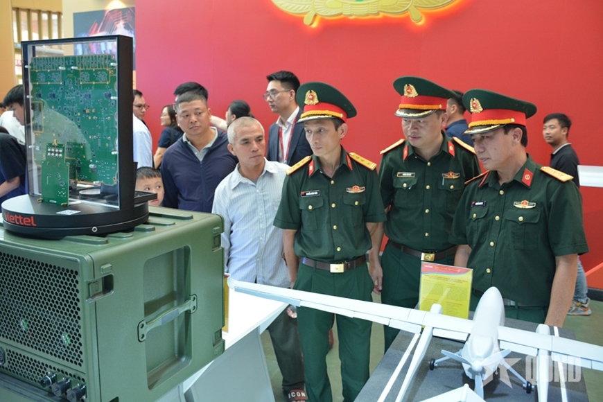 | Bộ đội và nhân dân tham quan sản phẩm ngành công nghiệp quốc phòng Việt Nam tại Triển lãm thành tựu đất nước với chủ đề “80 năm hành trình Độc lập-Tự do-Hạnh phúc”, tháng 9-2025. Ảnh: VĂN HIẾU |