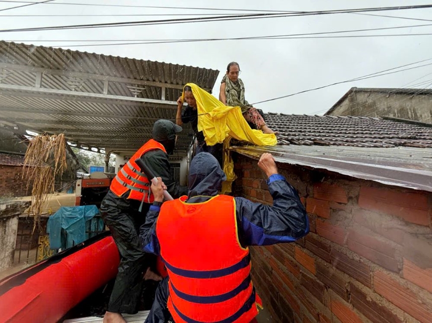 Không chỉ có trận lũ lịch sử ở các tỉnh Nam Trung Bộ, năm 2025 có 15 cơn bão và 5 áp thấp nhiệt đới đi vào Biển Đông, trong đó 9 cơn bão và 3 áp thấp nhiệt đới ảnh hưởng trực tiếp đến nước ta. Các cơn bão di chuyển nhanh, cường độ mạnh, không theo quy luật; mưa lớn và lũ từ thượng nguồn đổ về khiến gần 20 tuyến sông ở Bắc Bộ và Trung Bộ vượt mốc lịch sử, gây ngập lụt trên diện rộng. Nhiều địa phương chịu thiên tai kép, bão chồng bão, lũ chồng lũ, gây lũ ống, lũ quét, sạt lở đất nghiêm trọng. Trong những thời điểm khó khăn nhất, cán bộ, chiến sĩ luôn có mặt kịp thời ứng cứu nhân dân.