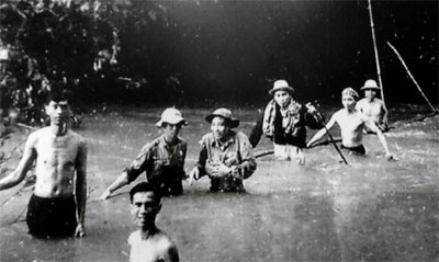 | Cán bộ Bộ tư lệnh chiến dịch Đồng Xoài vượt sông vào vị trí tập kết chiến dịch. Ảnh tư liệu |