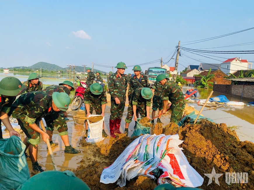 | Chỉ huy Trung đoàn 141 kiểm tra, động viên bộ đội tham gia giúp địa phương khắc phục hậu quả cơn bão số 11 năm 2025. Ảnh: XUÂN THIỆN |