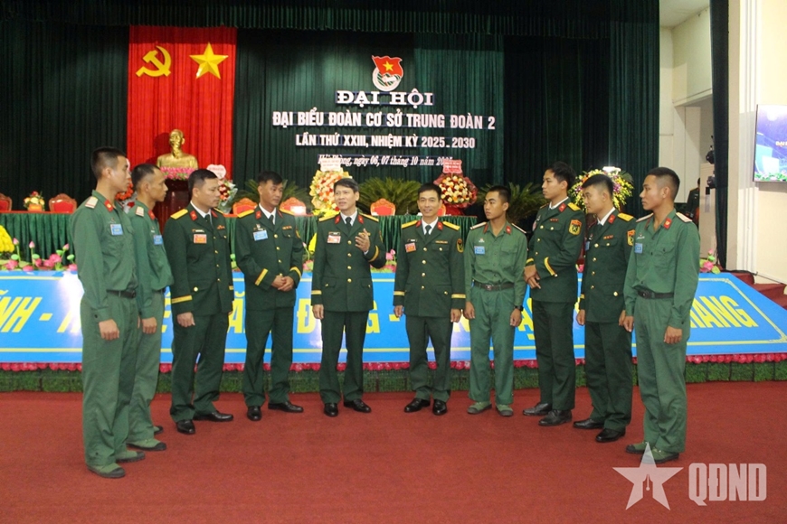 | Các đại biểu trao đổi trong Đại hội đại biểu Đoàn cơ sở Trung đoàn lần thứ XXIII, nhiệm kỳ 2025-2030. |