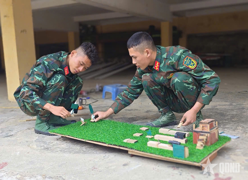 Chiến sĩ Trung đoàn 2 làm mới sáng kiến, cải tiến mô hình học cụ.