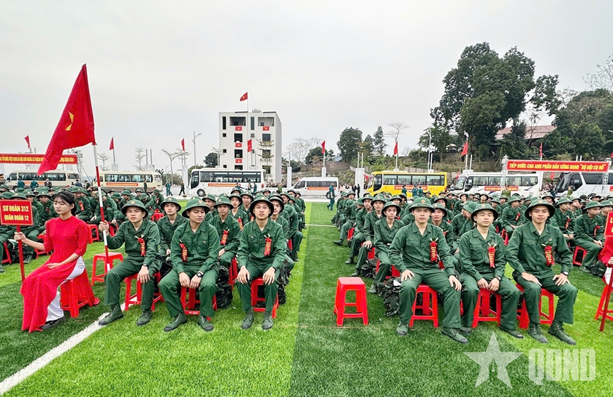 | Chiến sĩ mới trong Lễ giao quân của địa phương. |