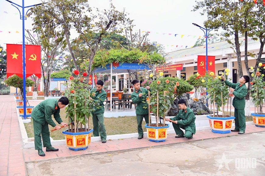 Chế độ, tiêu chuẩn ăn Tết được bảo đảm đầy đủ; ngoài tiêu chuẩn theo quy định, đơn vị bổ sung thêm từ quỹ tăng gia sản xuất, duy trì 100% nhu cầu thịt, cá, rau xanh trong những ngày Tết. Sau Tết, toàn trung đoàn tổ chức “Tết trồng cây”, dự kiến trồng gần 3.800 cây lấy gỗ và cây ăn quả, tạo cảnh quan bền vững cho đơn vị.