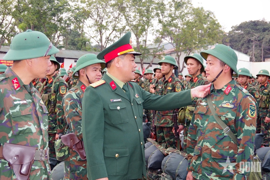 | Thiếu tướng Hoàng Duy Chiến, Phó tư lệnh Quân khu 4 kiểm tra công tác chuẩn bị ra quân huấn luyện năm 2026 tại Trung đoàn. |