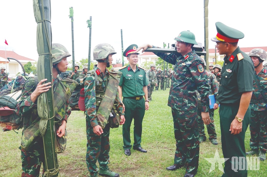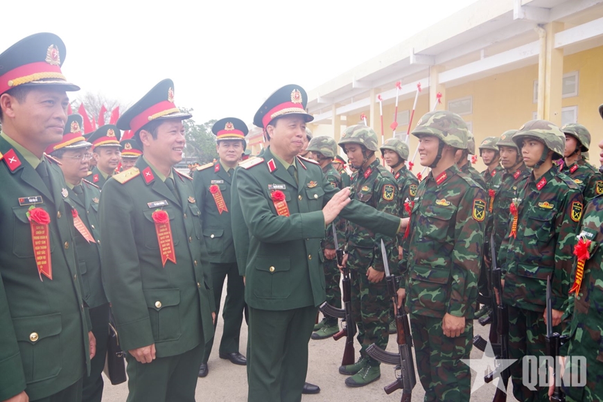 | Thiếu tướng Tô Thành Quyết, Phó tư lệnh Quân khu 3 kiểm tra công tác SSCĐ của Trung đoàn. |
