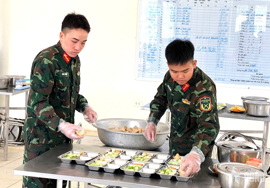 Nhờ đó, bếp ăn luôn bảo đảm định lượng, nâng chất dinh dưỡng, bổ sung năng lượng trong những ngày giá rét. Đội ngũ nuôi quân chủ động điều chỉnh thực đơn theo hướng tăng món nóng sốt; canh, cơm được giữ nhiệt trong dụng cụ chuyên dụng và chỉ chia ngay trước giờ ăn để bộ đội “ăn nóng, uống sôi”, đáp ứng tốt cường độ huấn luyện.