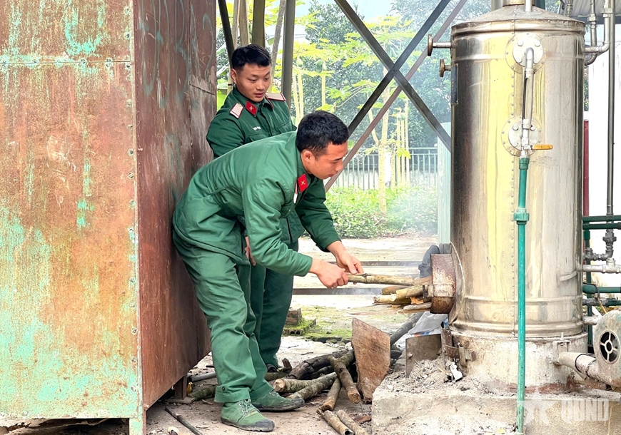 Trung đoàn 877 duy trì nước nóng phục vụ sinh hoạt, góp phần phòng bệnh mùa lạnh cho bộ đội.