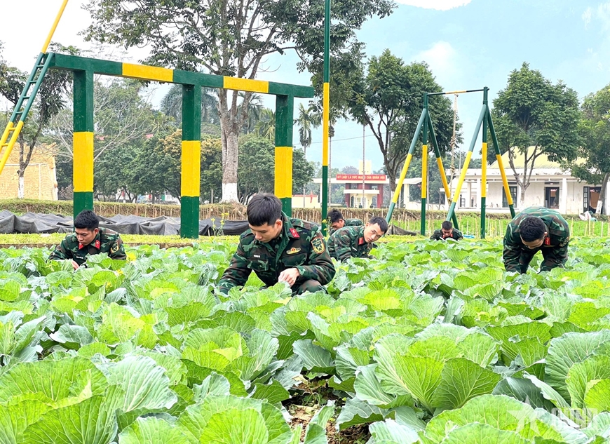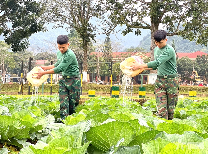 Giữ quân số khỏe trong mùa đông, bữa ăn đóng vai trò đặc biệt quan trọng. Vì vậy, Trung đoàn 877 đẩy mạnh tăng gia sản xuất, chủ động nguồn thực phẩm tại chỗ bảo đảm “xanh, sạch, an toàn”. Khu tăng gia vẫn duy trì màu xanh của rau vụ đông như bắp cải, su hào, súp lơ… kết hợp nguồn thịt, cá, trứng từ hệ thống chăn nuôi khép kín.