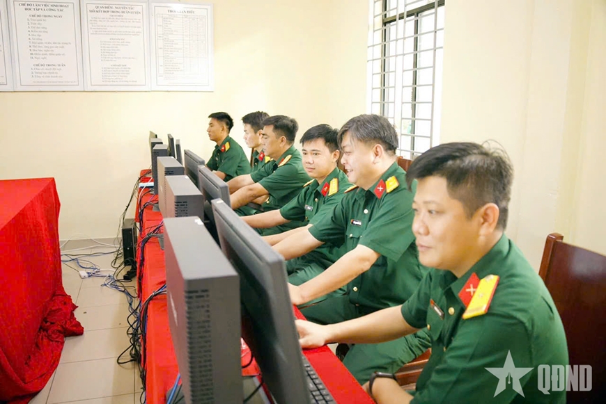 | Đội ngũ cán bộ Trung đoàn Gia Định tìm hiểu thông tin trên không gian mạng để phục vụ công tác. |