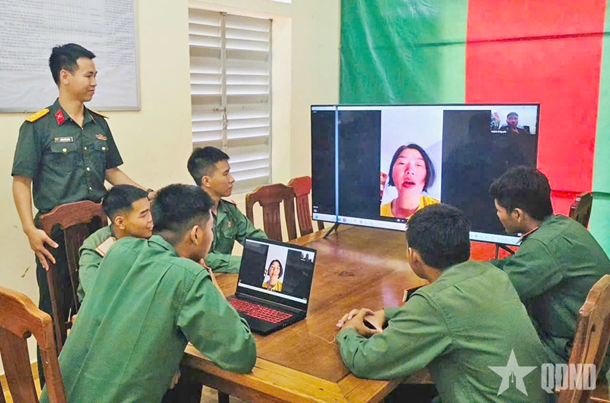 | Các chiến sĩ được liên lạc với người thân qua cuộc gọi video. |