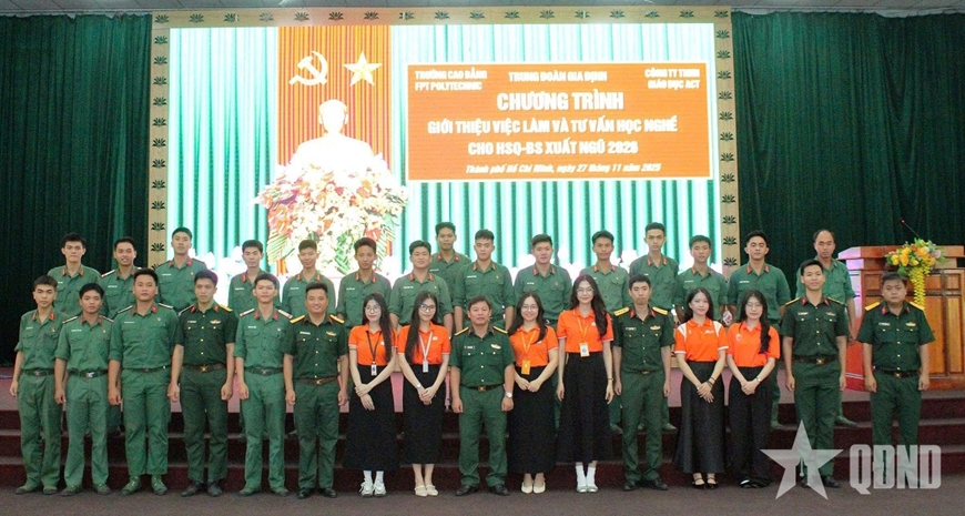 Trung đoàn Gia Định tổ chức tư vấn, định hướng nghề nghiệp cho quân nhân chuẩn bị xuất ngũ năm 2026 tại đơn vị. Ảnh: GIA ĐỊNH