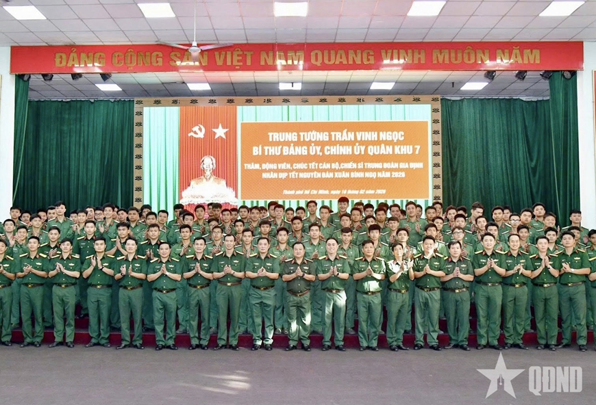 Trong dịp này, Trung đoàn Gia Định đón Trung tướng Trần Vinh Ngọc, Bí thư Đảng ủy, Chính ủy Quân khu 7 đến thăm, chúc Tết. Tại buổi gặp mặt, đồng chí Chính ủy Quân khu thăm hỏi tình hình đời sống, sinh hoạt, kết quả huấn luyện, xây dựng chính quy, rèn luyện kỷ luật và nhiệm vụ sẵn sàng chiến đấu của đơn vị; đặc biệt quan tâm công tác chuẩn bị đón Tết cho bộ đội.