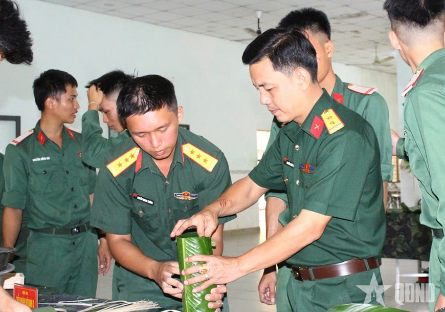 | Đơn vị cùng nhau gói bánh chưng, giáo dục bộ đội ý nghĩa Tết cổ truyền của dân tộc. |
