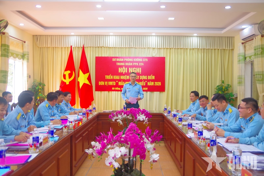| Đại tá Nguyễn Minh Đức, Bí thư Đảng ủy, Chính ủy Sư đoàn 375 giao nhiệm vụ cho Trung đoàn Pháo Phòng không 224 xây dựng điểm vững mạnh toàn diện ''mẫu mực, tiêu biểu'' năm 2026. |