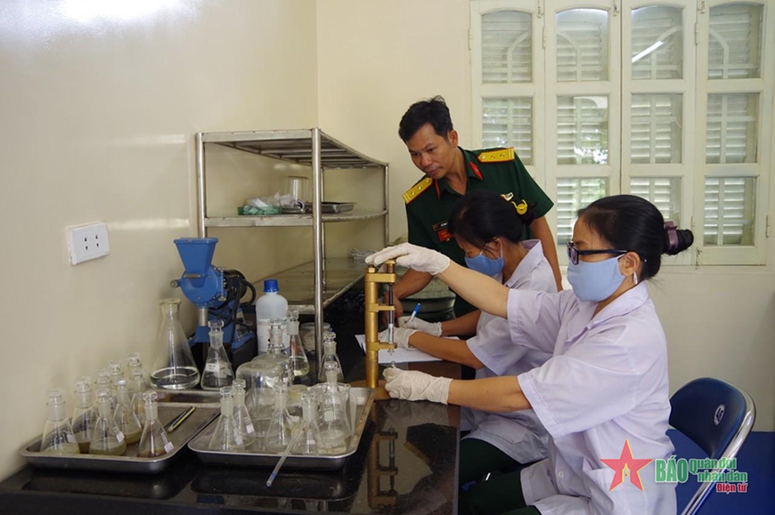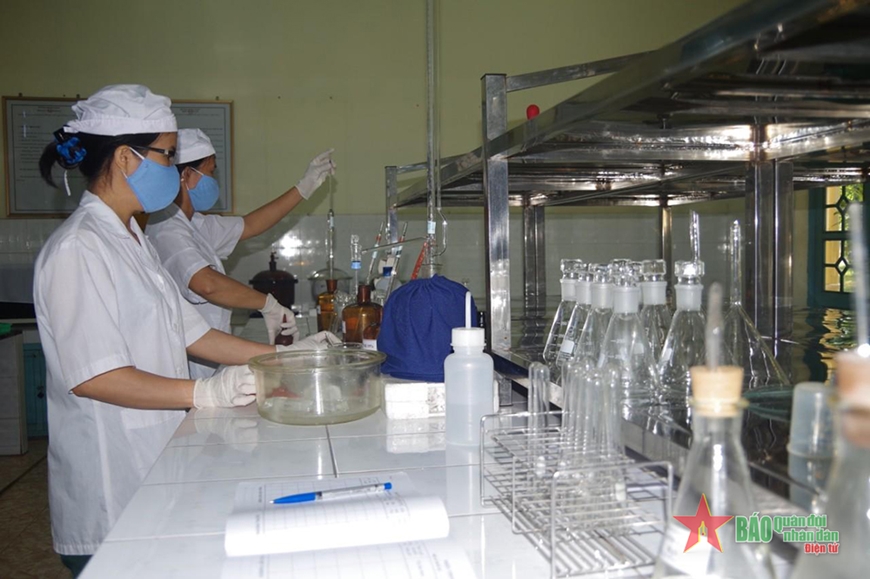 Cán bộ, nhân viên Trung tâm Kiểm định đạn dược T263 làm việc trong phòng thí nghiệm. Ảnh: VĂN MẠNH