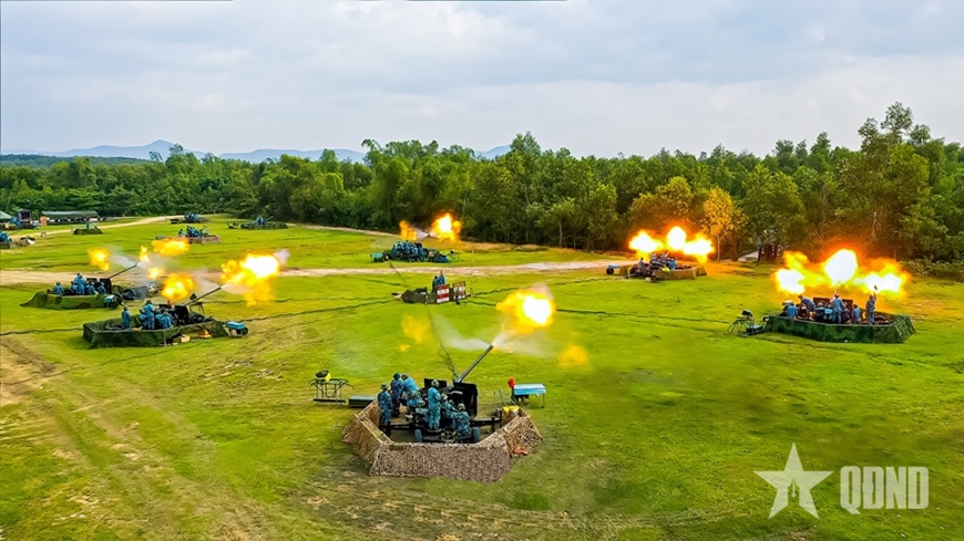 | Trung đoàn 224, Sư đoàn 375 huấn luyện thực hành bắn đạn thật tại trận địa khu vực Đồng Xanh-Đồng Nghệ, TP Đà Nẵng. |