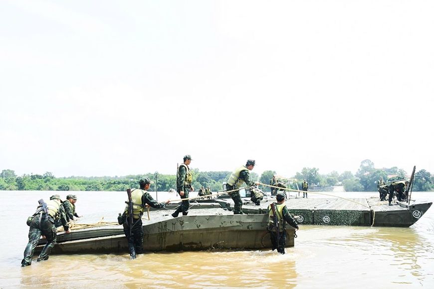 Lữ đoàn Công Binh 25, Quân khu 7 thực hành huấn luyện vượt sông. Ảnh: VƯƠNG VỮNG