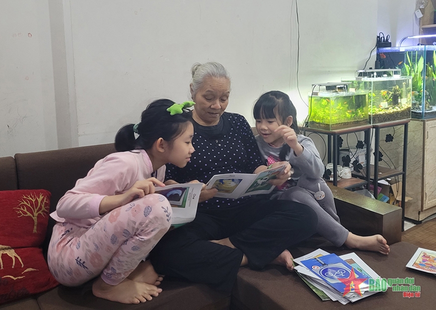 Mẹ của tác giả bài viết và các cháu. Ảnh: LINH THÙY