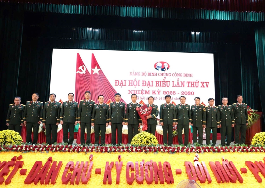 | Ban Chấp hành Đảng bộ Binh chủng Công binh nhiệm kỳ 2025-2030 ra mắt đại hội. Ảnh: VỮNG NGUYỄN |