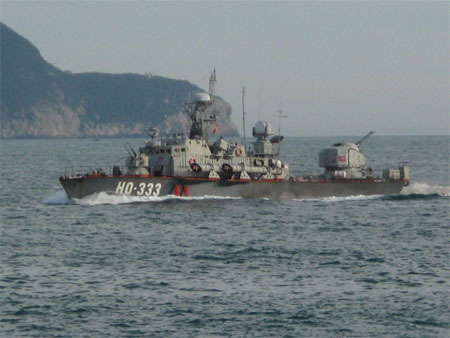 Tàu HQ 333 (Vùng 3 Hải quân) tuần tra trên biển.