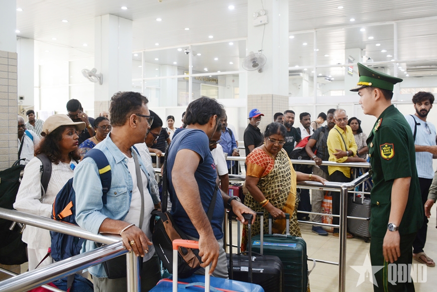 | Nhân viên Đồn Biên phòng Cửa khẩu quốc tế Mộc Bài, Ban Chỉ huy BĐBP tỉnh Tây Ninh thực hiện công tác kiểm soát xuất, nhập cảnh. |