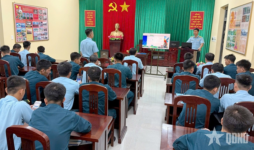 Chi đoàn Trạm Radar 69 (Trung đoàn 292) học tập “Phong trào Bình dân học vụ số”. |