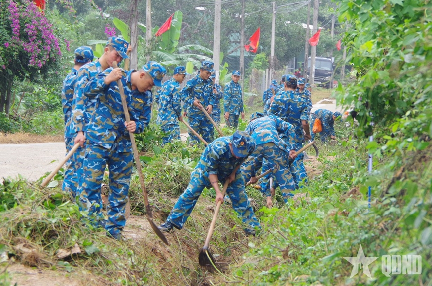 Cán bộ, đoàn viên, thanh niên làm công tác dân vận trên địa bàn đóng quân. |