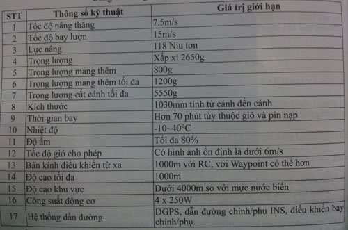 Thông số kỹ thuật của thiết bị bay không người lái MICRODRONE MD4-1000.