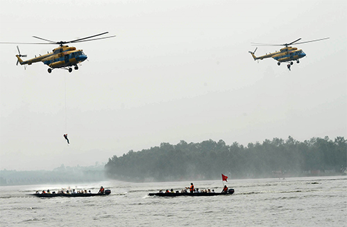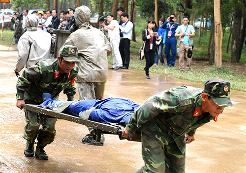 QĐND - Cuộc Diễn tập thực binh ứng phó thảm họa và cứu trợ nhân đạo năm 2013 (gọi tắt là diễn tập ARDEX-13), được tổ chức hôm qua (23-10), tại Thị xã Sơn Tây (Hà Nội). Đây là cuộc diễn tập lớn của các nước ASEAN, do Việt Nam đăng cai tổ chức. Đối phó với các tình huống đặt ra, hàng trăm phương tiện các loại, trong đó có nhiều phương tiện hiện đại như máy bay trực thăng, xe chữa cháy hiện đại, xe cứu hộ đa năng và hàng nghìn người dân, cán bộ, chiến sĩ LLVT đã được huy động tham gia xử lý. Có dịp tham gia cuộc diễn tập, phóng viên Báo Quân đội nhân dân đã ghi lại một số hình ảnh phản ánh hoạt động của các lực lượng.