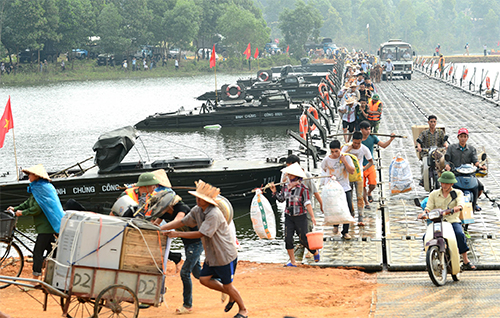 Giao thông chia cắt, Bộ đội Công binh bắc cầu phao để kịp thời sơ tán và ứng cứu nhân dân.