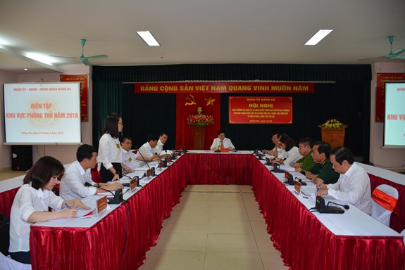 Trung tá Nguyễn Mạnh Thắng, Phó chỉ huy trưởng, Tham mưu trưởng Ban CHQS quận Đống Đa, cho biết: “Diễn tập KVPT quận là nhiệm vụ trọng tâm trong năm của địa phương và đơn vị. Do đó, ngay từ đầu năm, Ban CHQS quận đã tham mưu với Quận ủy Đống Đa sớm ban hành các chỉ thị, kế hoạch về diễn tập KVPT một bên hai cấp trên bản đồ và thực địa, có một phần thực binh thiết quân luật; thành lập Ban chỉ đạo diễn tập KVPT, đồng thời phân công rõ trách nhiệm cho các thành viên Ban chỉ đạo, thành lập các tiểu ban nội dung, giúp việc...”. Sau khi hoàn thành hệ thống văn bản lãnh đạo, chỉ đạo, Ban chỉ đạo diễn tập quận đã tổ chức hội nghị giao nhiệm vụ cho các lực lượng diễn tập, chủ động xây dựng kế hoạch từ sớm, mời giáo viên Học viện Quốc phòng về tập huấn cho lực lượng tham gia diễn tập cấp quận, lãnh đạo 21 phường và khung diễn tập của 4 phường (Quốc Tử Giám, Nam Đồng, Phương Liên, Khương Thượng), coi đây là dịp tốt để bồi dưỡng nâng cao nhận thức, kiến thức về quốc phòng, an ninh cho cả hệ thống chính trị, cán bộ, đảng viên và nhân dân trong toàn quận.