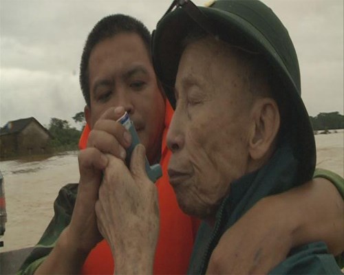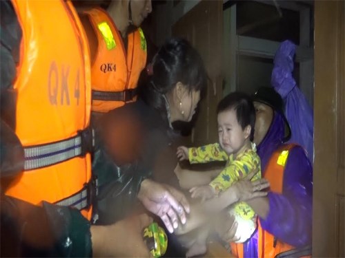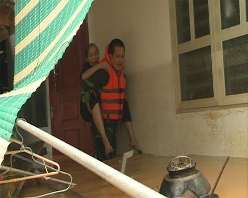 Tỉnh Hà Tĩnh là địa phương bị thiệt hại nhiều do mưa lũ. Có 4 huyện bị ngập lụt, huyện Hương Khê có 11 xã nước ngập sâu từ 2-3m, nhiều xã bị cô lập hoàn toàn. Tại đây, nhờ nắm chắc tình hình, diễn biến thời tiết, từ chiều tối 14-10, Bộ CHQS tỉnh Hà Tĩnh đã cử cán bộ, chiến sĩ “ém quân” tại các nơi trọng điểm, sẵn sàng ứng phó. Hàng nghìn hộ dân ở nơi vùng trũng, vùng nguy hiểm, cùng tài sản đã được bộ đội, dân quân, công an giúp di dời đến nơi an toàn. Lúc 10 giờ ngày 15-10, ông Phạm Kim Hồng, 86 tuổi ở xã Gia Phố, huyện Hương Khê bị suy hô hấp cấp, đã được cán bộ, chiến sĩ Ban CHQS huyện Hương Khê tổ chức đưa đến cơ sở y tế cấp cứu kịp thời, thoát khỏi nguy kịch. Vợ ông Hồng, bà Sâm nói với chúng tôi rằng: “Rất may có các chú bộ đội ở Ban CHQS huyện Hương Khê giúp gia đình đưa ông đi cấp cứu nhanh. Nếu không có các chú thì ông bà không biết mần răng. Cảm ơn các chú!”.