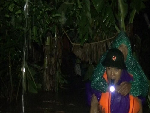 Lực lượng vũ trang tỉnh Quảng Bình giúp nhân dân sơ tán khỏi vùng nguy hiểm.