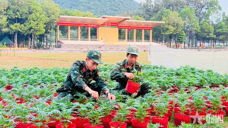 Những ngày cuối năm, khi sắc xuân bắt đầu chạm ngõ, tại các đơn vị thuộc Trung đoàn 20, Sư đoàn 330, Quân khu 9, từng mầm xanh lặng lẽ được gieo xuống bằng đôi tay cần mẫn của người lính Cụ Hồ. Từ khâu chọn giống, ươm cây đến chăm bón, tưới nước, mọi công đoạn đều được thực hiện tỉ mỉ, trách nhiệm, thể hiện sự khéo tay và tinh thần lao động sáng tạo, một nét đẹp rất riêng của bộ đội.
